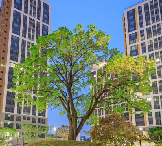 대림의 자랑, 올해 5월 입주한 녹번역 e편한세상 캐슬 단지 중심에는 살구나무가 우뚝 서 있다.