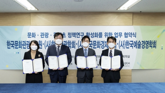 한국문화관광연구원(원장 김대관, 이하 연구원)은 (사)한국관광학회(학회장 정병웅), (사)한국문화경제학회(학회장 고정민), (사)한국예술경영학회(학회장 양지연)와 11월 10일(화) 한국문화관광연구원 대회의실에서 업무협약을 체결했다.