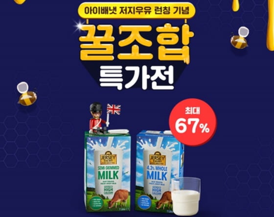 ‘저지우유(whole)+저지우유(semi)+저지우유(semi)’로 구성된 세트 상품의 경우, 선착순 100명에 한정해 67%할인된 가격으로 구매 가능하다. 이 외에도 ‘저지우유+곡물조아퐁’, ‘저지우유+계란과자’, ‘끙아젤리 포도+비타젤리’, ‘요거조아(10입)+끙아C(10입)’, ‘꼬마 무항생제 사골곰탕 6+6’ 등 꿀조합 간식 세트를 저렴한 가격에 구입할 수 있다.