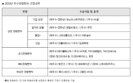 - 한국관광공사, 올해의 관광벤처 성장·초기·예비·재도전 부문 총 20개 기업 선정