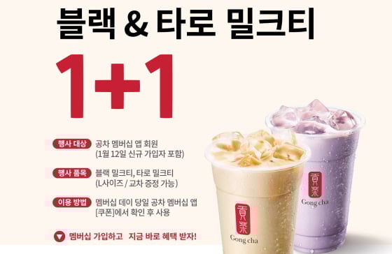 공차코리아가 1월 멤버십 데이를 맞아 블랙&타로 밀크티 1+1 이벤트를 진행하기로 했다.