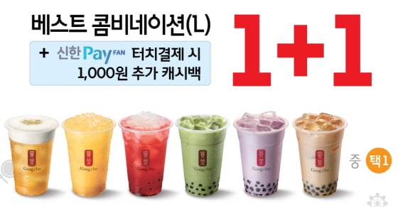 이번 프로모션은 1월 20일 단 하루 동안 진행되며, 공차의 베스트 콤비네이션 메뉴 중 1잔을 구매하면 동일 음료 1잔을 무료로 제공하는 내용이다.