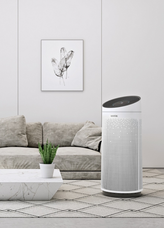 이번 웰스 공기청정기 신제품은 ‘토네이도 흡입 시스템’과 ‘경사면 송풍 방식’을 적용, 공기 중 오염 물질을 더욱 빠르게 정화하는 것이 특징이다.