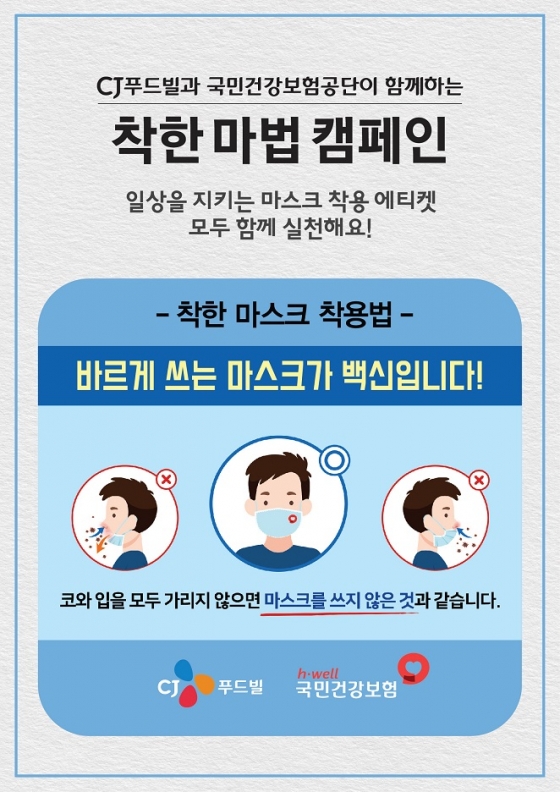 CJ푸드빌이 국민건강보험공단과 손잡고 ‘착한 마스크 사용법(착한 마법)’ 캠페인을 진행한다고 5일 밝혔다.