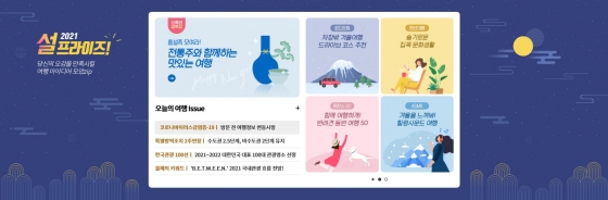 문화체육관광부(장관 박양우)와 한국관광공사(사장 안영배)는 이른바 ‘홈설족(설 연휴를 집에서 보내는 사람들)’을 위해 온라인으로 여행 콘텐츠를 만날 수 있는 설 특집관 ‘2021 설 프라이즈! 당신의 오감을 만족시킬 여행 모았Zip‘을 마련했다.