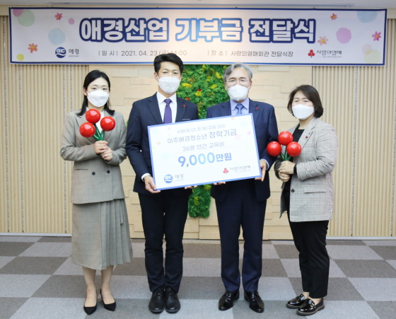 애경산업이 지난 23일 창립 36주년을 맞아 서울 사회복지공동모금회와 '이주배경 청소년 장학기금' 전달식을 진행했다.