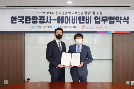 공사와 에어비앤비는 5월 20일 오전 10시 공사 본사에서 공사 안영배 사장과 에어비앤비 손희석 컨트리매니저 등이 참석한 가운데 '포스트코로나 한국관광 및 국제관광 활성화를 위한 업무협약'을 체결하고, 국내여행 온라인 홍보로 한국에 대한 잠재 관광객의 관심을 지속시켜 코로나 종식 이후 실질 방문으로 이어지게 하는 데 협력키로 했다. 주요 협업내용은 방한관광 조기 회복을 위한 공동 협력, 에어비앤비 체험 상품을 활용한 한국관광 라이브투어 홍보와 공동 판촉, 국내관광 활성화를 위한 지역 여행콘텐츠 발굴ㆍ보급 등이다.