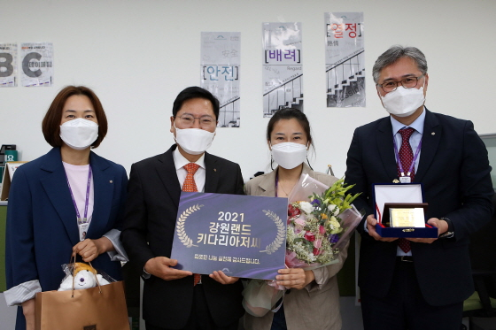 강원랜드 이삼걸 대표가 자발적으로 봉사활동을 실천한 우수 자원봉사직원을 찾아 '강원랜드 자랑스러운 선행 人'상을 시상했다.