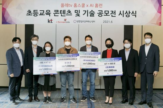 지난 3월부터 진행해온 이번 공모전은 KT와 아이스크림에듀가 공동으로 개발, 지난달 출시한 초등학생 스마트 홈러닝 서비스 '올레 tv 홈스쿨 X AI홈런(올레 tv 홈스쿨)'과의 시너지를 바탕으로 스타트업 및 예비 창업자들의 사업화와 시장진출을 돕기 위해 진행됐다. KT와 아이스크림에듀, 인천창조경제혁신센터(인천혁신센터)가 공동으로 주최했다.
