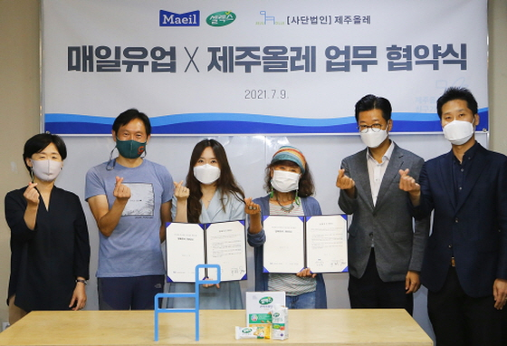 제주올레 사무국에서 9일 진행된 협약식에는 제주올레 서명숙 이사장과 매일유업 신진주 본부장, 매일홀딩스 고정수 본부장이 참석했다. 매일유업은 후원금 2천만 원과 함께, 제주올레가 내년 1월까지 7개월 간 매달 4,500명에게 제공할 수 있는 셀렉스 제품을 후원하기로 했다. 이와 함께 양사는 ESG와 관련한 다양한 협업 방안을 모색할 계획이다.