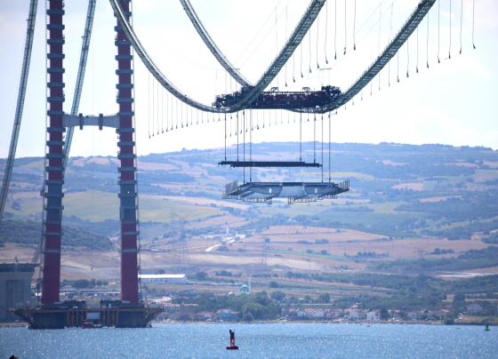 DL이앤씨와 SK에코플랜트가 세계에서 가장 긴 현수교로 건설 중인 터키 차나칼레대교의 상판 설치 작업에 돌입했다.