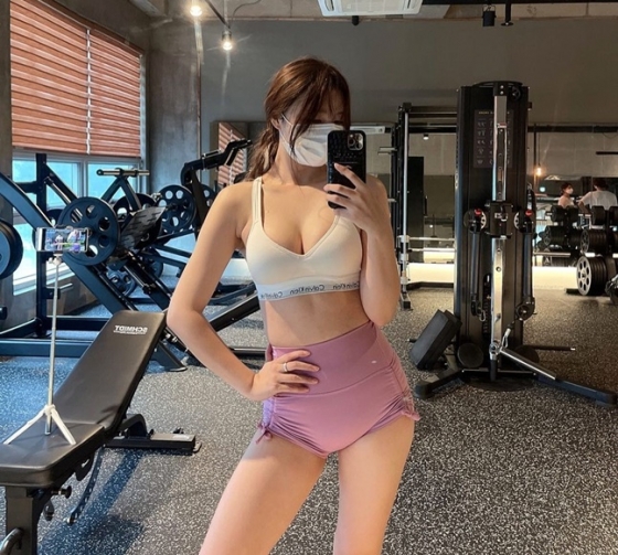 헬스장에서 짧은 팬츠에 탱크톱 상의의 트레이닝 룩으로 자신의 매력을 마음껏 뽐냈다. 마스크까지 착용해 방역에도 신경을 썼다.