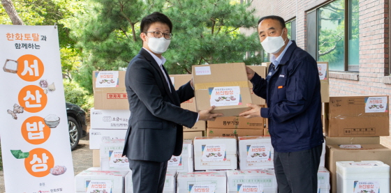 한화토탈은 12일 회사가 위치한 충남 서산지역 농수산물을 구매해 국내 중소 고객사들의 구내식당에 전달하는 '서산밥상 데이' 행사를 진행했다고 밝혔다.