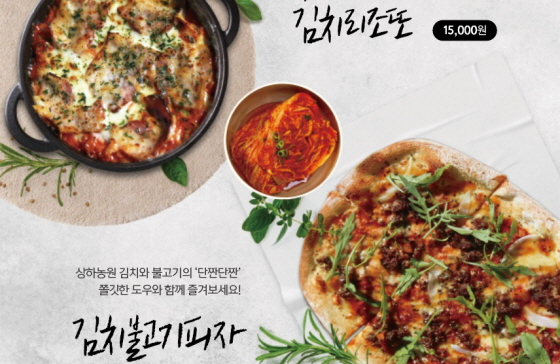 상하농원 양식당 '상하키친'에서 이번에 새롭게 출시한 신 메뉴는 '김치의 이색변신' 이라는 컨셉으로 상하농원 사계절 김치의 감칠맛을 살리며 햄 공방의 수제 베이컨을 곁들인 '수제 베이컨 김치 리조또'와 매콤하고 알싸한 상하농원 김치를 볶아 쫄깃한 도우와 함께 즐기는 '김치 불고기피자'를 신 메뉴로 선보인다.