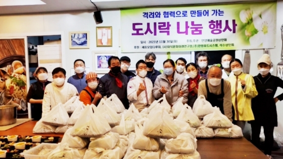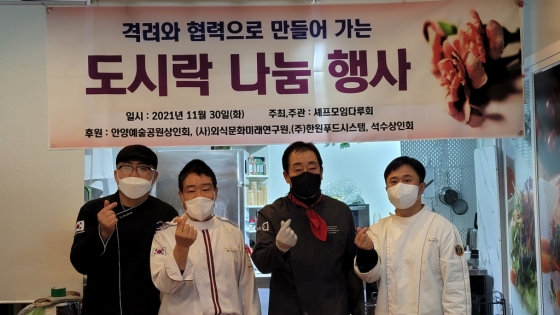 셰프모임 다루와 안양 예술공원번영회 회원들이 지난 11월 30일 정성을 모아 어르신들에 공짜 밥상을 제공하는 '격려와 협력으로 만들어가는 도시락 나눔 행사'를 열었다.