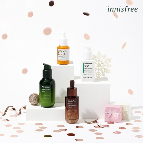 뿐만 아니라 지난 9월 출시 이후 뜨거운 반응을 얻고 있는 '레티놀 시카 흔적 앰플', 이니스프리 대표 셀럽이자 1등 세럼인 '그린티 씨드 세럼', 이니스프리 재구매율 1위 수분크림 '그린티 씨드 크림', 확신의 대세 앰플 '블랙티 유스 인핸싱 앰플' 등을 포함하여 스킨케어, 클렌징, 메이크업, 바디헤어, 네일 등 카테고리 전 품목을 30% 저렴한 가격으로 만날 수 있다. 단, 일부 품목은 할인 혜택에서 제외된다.