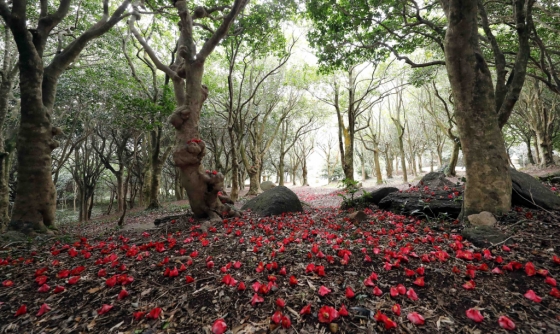 전남 강진 다산초당에서 백련사까지 1.3㎞는 겨울철 동백꽃이 아름답다. 다산 정약용과 혜장스님을 이어준 아름다운 숲길이다.