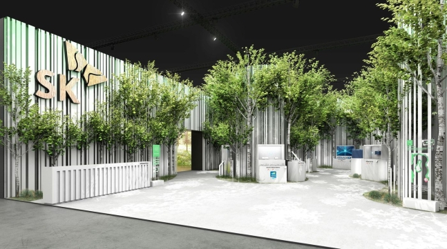 SK 전시관인 '그린 포레스트 파빌리온'(Green Forest Pavilion)은 총 4개의 구역으로 나뉘어 관람객들이 SK의 탄소 감축 노력을 하나의 여정처럼 체험할 수 있도록 구성됐다.