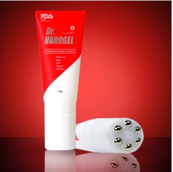 ㈜제이와이케이의 '닥터 바로겔(Dr. VAROGEL)'은 튜브와 LED 진동 자석의 일체형 마사지기로, 겔을 손에 묻힐 필요 없이 튜브를 살짝 눌러 위생적인 도포가 가능하다는 것이 특징으로 꼽힌다.