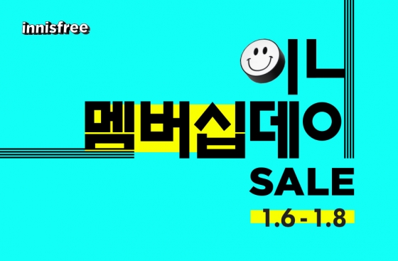 이니스프리가 오늘(6일)부터 오는 8일까지 3일간 '1월 멤버십데이'를 진행한다고 6일 밝혔다.