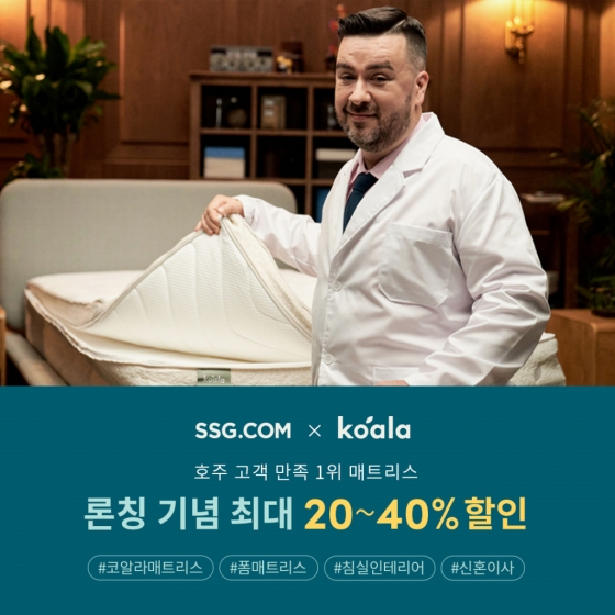코알라는 SSG닷컴에서 코알라 베스트셀러 매트리스와 패딩턴 패브릭 침대 프레임을 비롯, 코알라 베개를 포함한 침구 5종과 코알라 침대 협탁 등 다양한 상품을 만나볼 수 있다. 코알라는 SSG닷컴 입점을 기념해 입점 대상 전 제품을 20~40% 할인하는 프로모션을 진행한다.