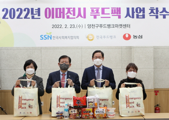 농심은 지난 23일, 서울 양천구 푸드뱅크마켓에서 한국사회복지협의회 전국푸드뱅크와 2022 년 이머전시 푸드팩 사업 착수식을 가졌다고 밝혔다.
