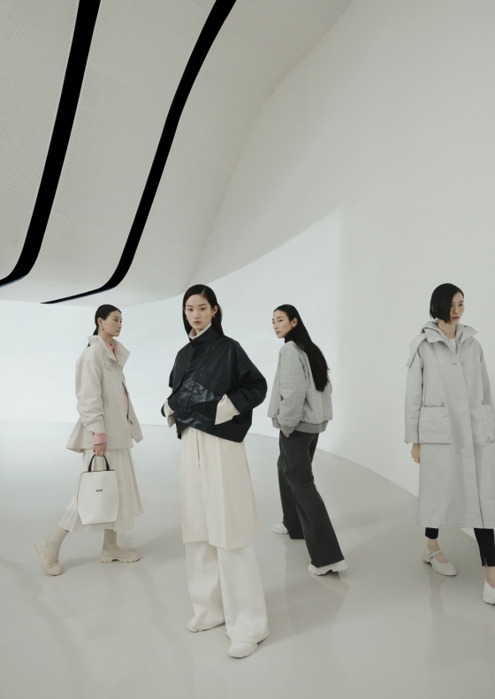 신현지, 이노아, 이주원, 임정인 등 모델 4인이 시즌 대표 착장 16가지를 입고 DDP 곳곳을 걷는 모습을 디지털 런웨이에 담았다. 클린한 외관의 크롭 재킷과 와이드 팬츠 셋업, 스카이 블루 컬러의 A라인 블라우스와 셔츠 드레스, 화이트 팬츠를 겹쳐입은 룩, 블랙 가죽 점퍼, 아이보리 셔츠 드레스와 팬츠를 조합한 룩 등을 선보였다.
