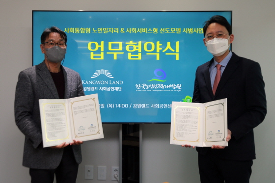 강원랜드 사회공헌재단은 지난 10일 재단에서 한국노인인력개발원과 강원 폐광지역 노인 일자리 마련을 위한 업무협약을 체결했다.