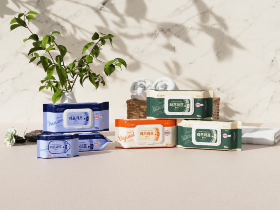'라프라프 물티슈'는 아기 피부에 가장 가까운 약산성(3.5~6.5pH)의 부드러운 저자극 케어 제품으로, 전 성분에 대해 안전성 테스트를 거친 원료만을 사용해 신생아부터 가족 모두 안심하고 사용할 수 있도록 고안됐다.