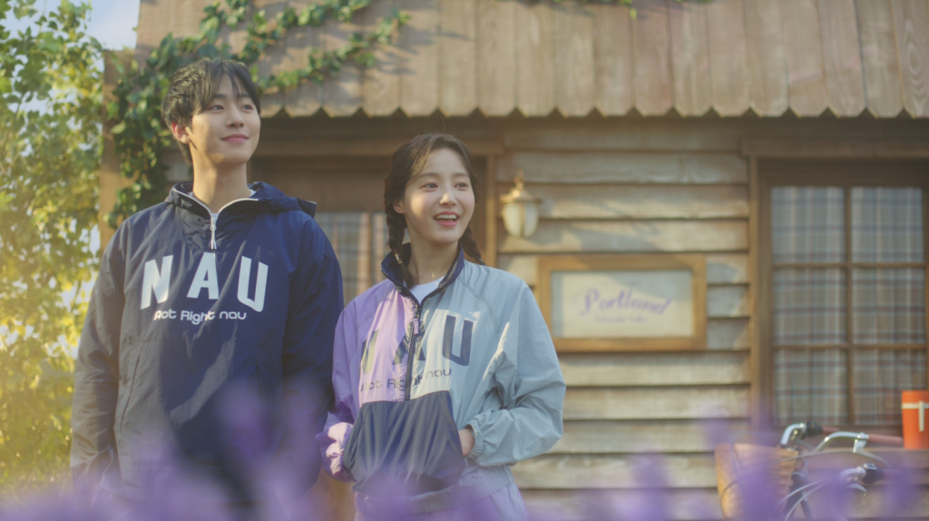 안효섭과 연우는 화사한 봄날 포틀랜드 라벤더 밸리를 배경으로 '꾸안꾸(꾸미지 않은 듯 꾸민) 트레이닝 셋업 스타일을 완성하며 편안하지만 스타일리시한 아웃도어룩을 소화했다.