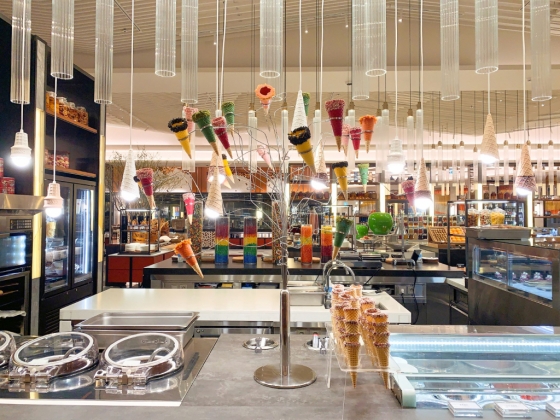 '디저트 스테이션'에는 크림 브륄레 등 20여종이 넘는 각종 수제 디저트가 주를 이룬다. 특히 아이스크림은 종류만해도 7종으로 프랑스 출신의 아이스크림 전문 셰프가 매일 아침 만들어 선보이는 등 디저트 하나에도 정성과 특별함이 남다르다. 오메기떡 등 제주의 맛을 담은 디저트도 있다.