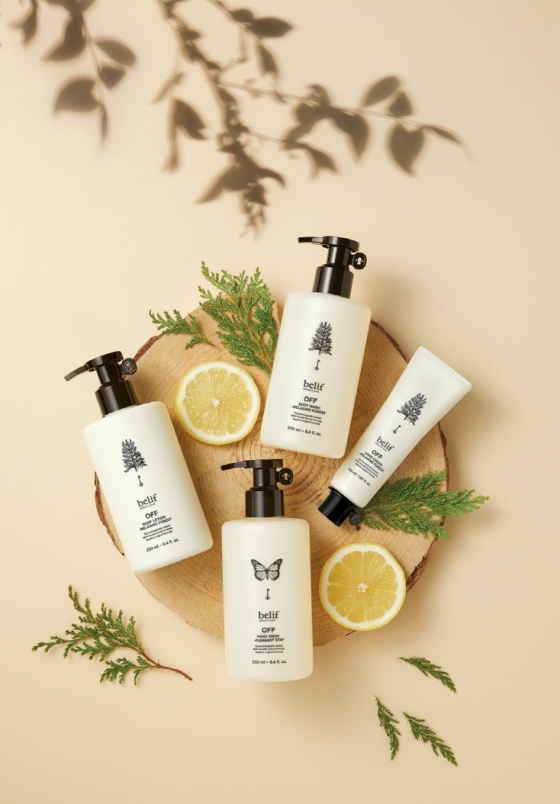 빌리프의 신규 라인이자 핸드&바디케어 전용 라인인 '오프'는 감각적인 향기로 찰나의 휴식을 선사한다는 컨셉으로, 핸드크림, 핸드워시, 바디로션, 바디워시 4 품목이 모두 2가지 향으로 출시되어 총 8종으로 출시된다.