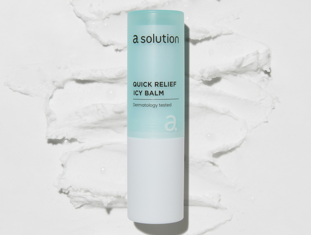 에이솔루션 퀵 진정 아이시 밤은 장시간 마스크 착용과 자외선으로 인한 뜨거운 열 등 외부 환경으로 인해 열 받은 피부에 빠른 진정과 쿨링 효과를 주는 스틱 타입의 수분 보습 밤이다.