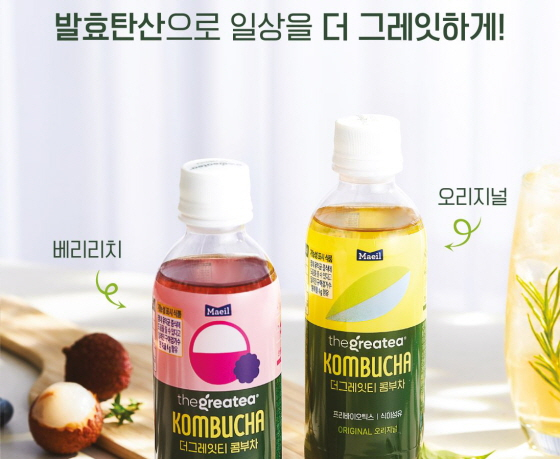 매일유업이 건강한 발효 탄산 음료 더그레잇티 콤부차를 10일 공식 출시했다.