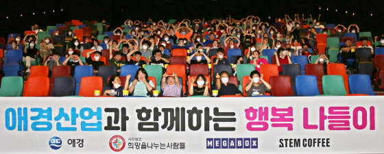 애경이 21일 메가박스 상암월드컵경기장점에서 (사)희망을나누는사람들, 위드주간보호센터와 함께 발달장애인을 위한 문화 나눔 행사인 '행복 나들이'를 진행했다.
