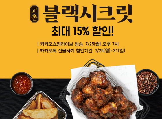 교촌치킨이 신메뉴 출시를 기념해 25일 저녁 7시 카카오쇼핑라이브를 진행한다.