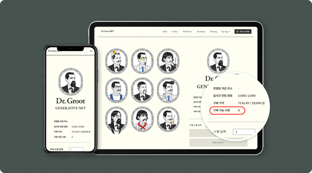 특히 닥터그루트에서 판매중인 마이크로바이옴 샴푸와 앰플이 포함된 일명 '탈모인류 구원 희망 KIT(소비자가 4만 3천원 상당)'를 구매자들에게 증정하며, NFT 구매와 함께 실생활에 밀접한 샴푸를 연계한 점이 호응을 이끌어냈다.