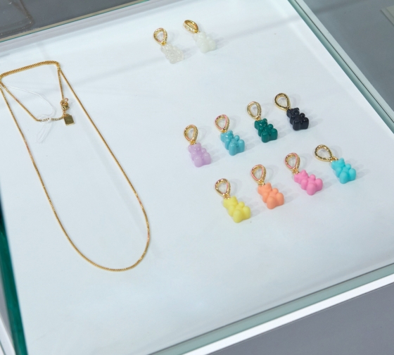 이밖에 룩에 세련된 포인트를 더할 수 있는 컬러 체인, 하트 체인 등 목걸이 체인과 캔디 같은 코스모 링도 핑크, 라벤더, 오렌지, 블랙 등 다채로운 컬러로 구성했다. 코스모 링은 여러 컬러를 레이어드해 착용할 수 있고, 가벼워 데일리로도 활용 가능하다.