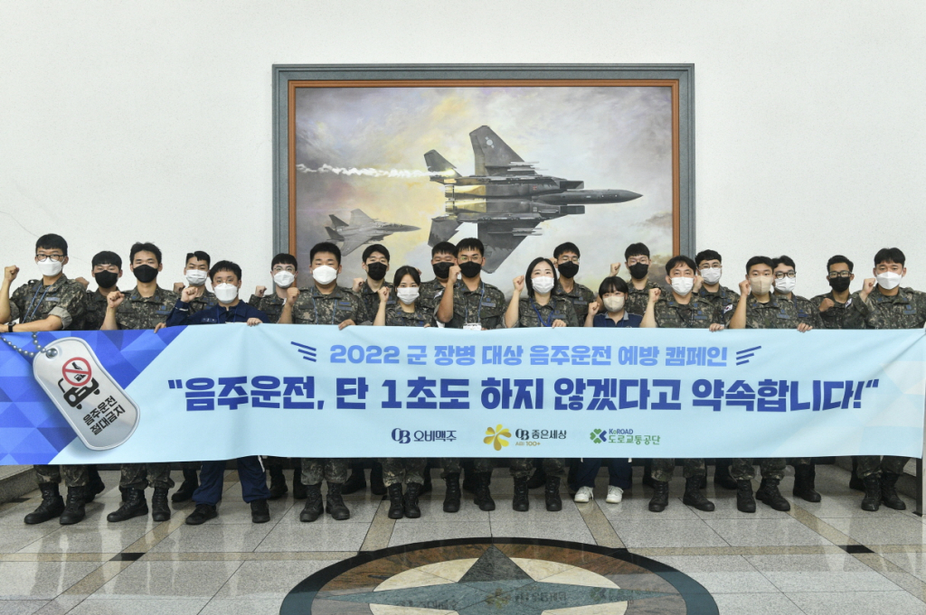 오비맥주와 도로교통공단은 지난 12일 대구에 위치한 공군 제11전투비행단을 찾아 장교와 부사관, 병사를 대상으로 음주운전 예방 교육과 음주운전 시뮬레이터 탑승 체험으로 음주운전의 위험성을 알렸다. 이외 음주 후에는 절대로 운전대를 잡지 않겠다는 다짐을 받고 간단한 퀴즈를 풀어 음주운전 상식을 점검하며 음주운전에 대한 경각심을 높였다.