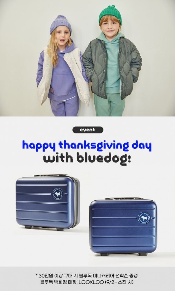 이번 프로모션은 전국 백화점 블루독, 블루독베이비 매장과 패밀리 라이프스타일 플랫폼 '룩스루(LOOXLOO)'에서 사은품 소진 시까지 진행된다. 프로모션 기간 내 실 결제 기준 30만원 이상 구매하는 고객에게는 연휴를 앞두고 여행 수요가 많아지고 있는 요즘 필요한 블루독 미니 캐리어를 선착순으로 증정한다. 멤버십 통합 프로모션과 중복 적용이 가능해 사랑하는 가족들과 지인들을 위한 명절 선물 준비에 대한 고객 부담감을 낮췄다.