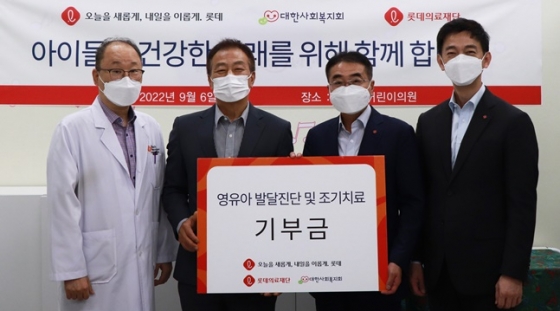 롯데는 6일 대한사회복지회(회장 김석현)와 롯데의료재단 보바스어린이의원(원장 윤연중)에 영유아 발달진단 및 치료지원을 위해 1억원씩 총 2억원을 후원했다고 복지회가 밝혔다.