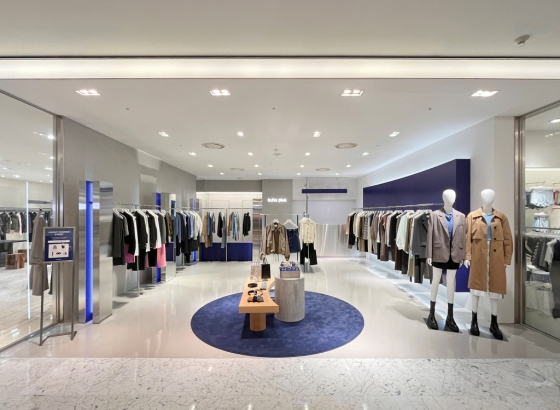 구호플러스의 이번 신규 매장은 현대백화점 무역센터 6층에 위치하며, 약 20평 규모다. 'Carved Blue(조각된 블루)' 컨셉을 바탕으로 미니멀하고 입체적인 실루엣을 공간의 구조와 형태에 반영했고, 구호플러스를 대표하는 블루 컬러를 포인트로 활용했다.