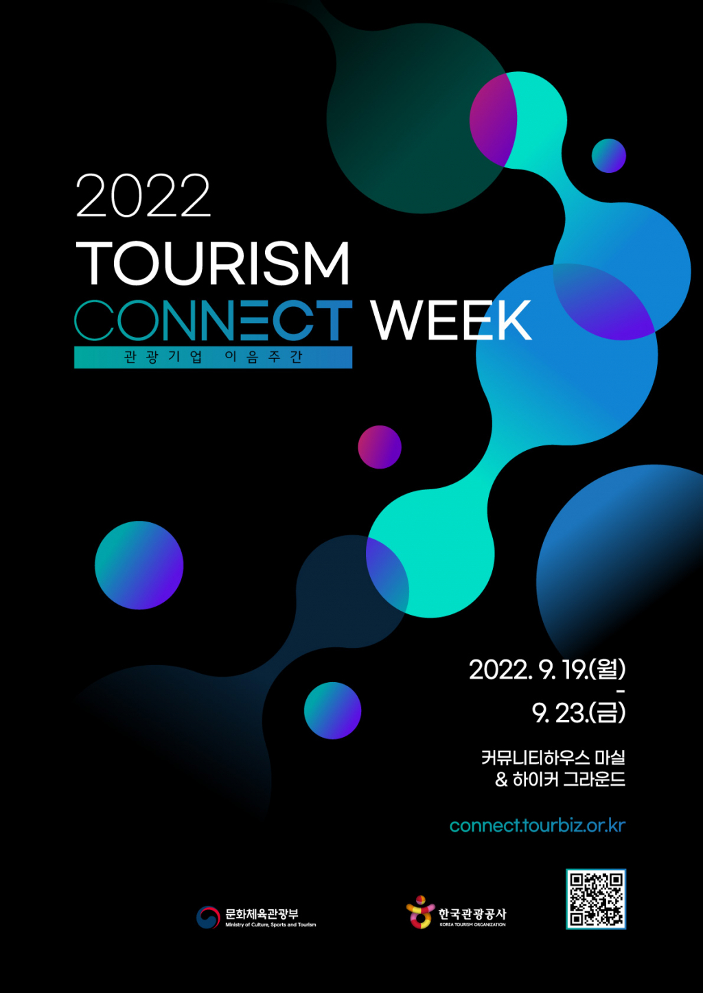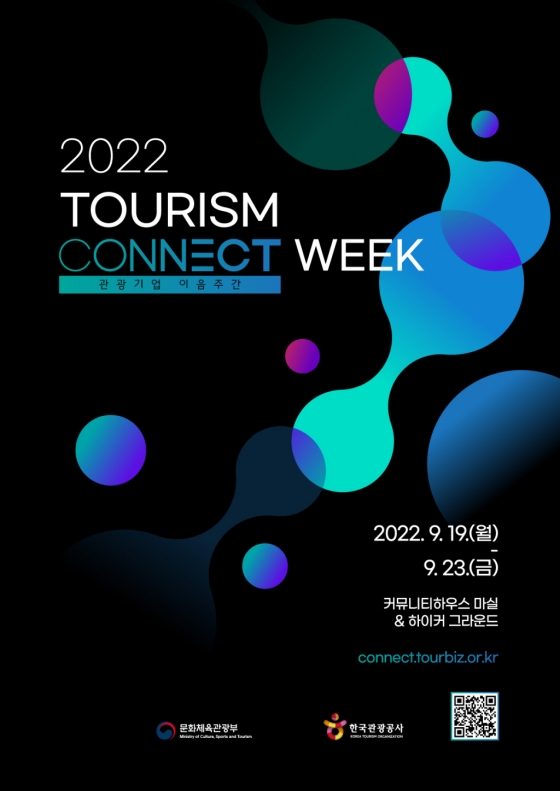 문화체육관광부(장관 박보균, 이하 문체부)와 한국관광공사(사장직무대행 신상용, 이하 공사)는 '2022 관광기업 이음주간(Tourism Connect Week)'을 오늘(19일)부터 23일(금)까지 개최한다. 이번 행사는 공식 누리집과 커뮤니티하우스 마실(서울 명동, 9.20.~22.) 및 하이커 그라운드(서울 중구 공사 서울센터, 9.20.~23.) 등에서 온·오프라인으로 진행한다.
