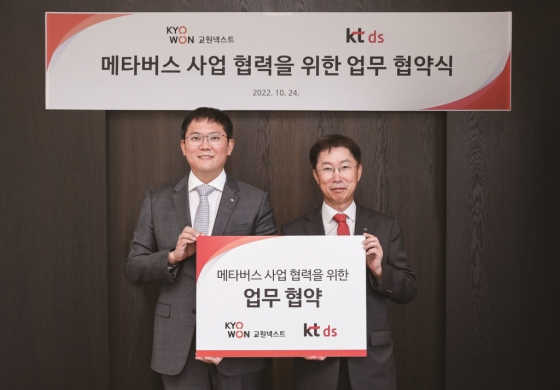 교원그룹(회장 장평순)는 지난 24일 IT서비스 전문기업 KT DS(대표 우정민)와 메타버스 사업 협력을 위한 업무협약(MOU)을 체결했다고 25일 밝혔다.