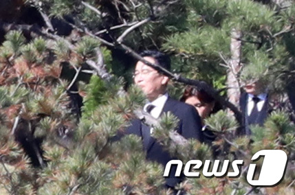 故 이건희 삼성전자 회장의 2주기인 25일 오전 경기 수원시 장안구 소재 선영에서 이재용 삼성전자 부회장이 추도식에 참석하고 있다. /사진제공=뉴스1