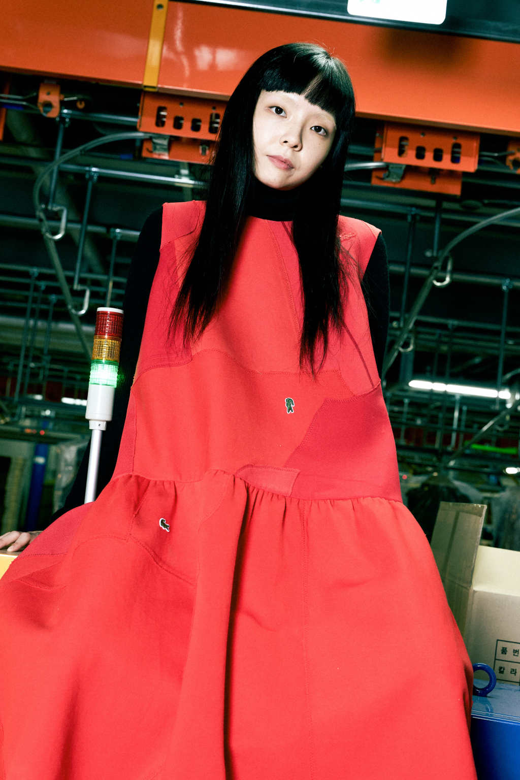 라코스테의 재고를 업사이클링한 점퍼, 드레스, 트랙수트 등 8가지 디자인을 전시하며, 라코스테의 대표 상품인 화이트 컬러 피케 셔츠를 활용한 조형물로 협업 컬렉션을 감각적으로 표현했다.