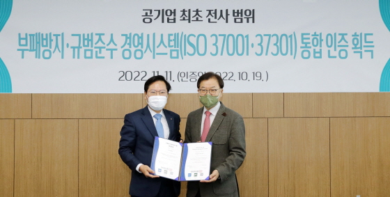 강원랜드가 부패방지(ISO 37001)·규범준수(ISO 37301) 경영시스템 통합 인증을 취득하고 11일 준법전문기관인 한국준법진흥원으로부터 인증서를 수여 받았다.