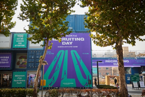 코오롱FnC는 지난 11월 10일, 11일 양일간 서울 커먼그라운드에서 2023년 신입사원 공개채용 1차 면접인 리쿠르팅 데이를 진행했다. 이번 공개채용은 기존 그룹 채용 형식이 아닌 코오롱FnC가 자체적으로 시행하는 첫번째 채용인만큼, 보다 자유롭고 편안한 분위기에서 리쿠르팅 데이를 진행한 것이 눈에 띈다.