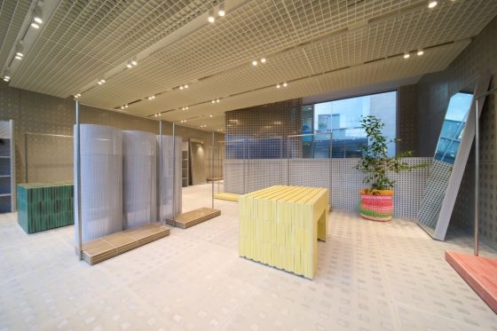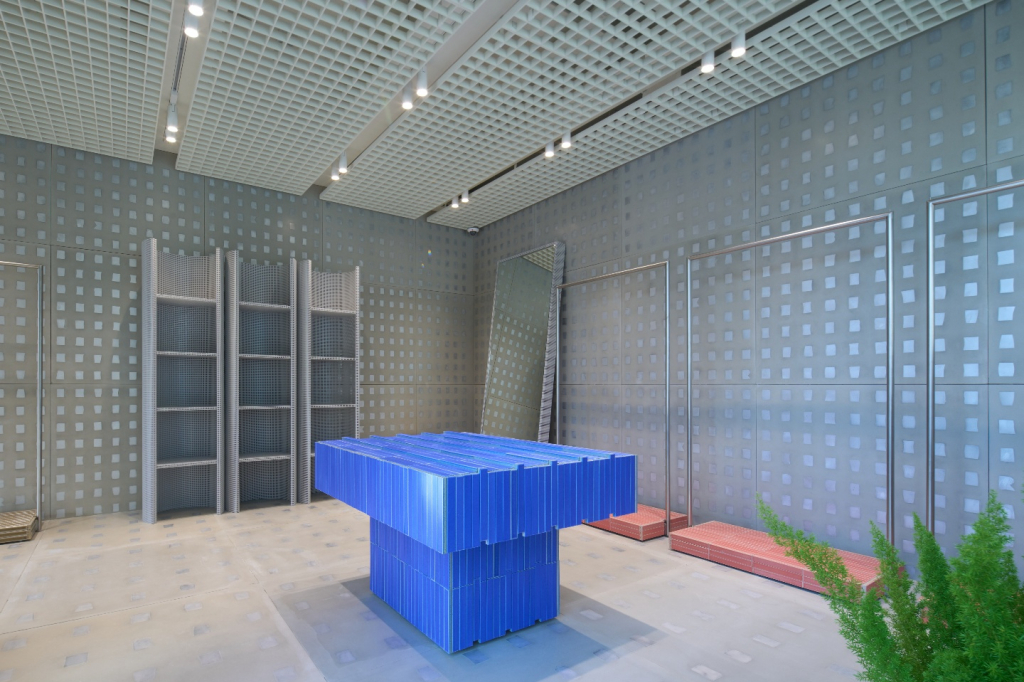 특히 '빛나는 청춘(Glittering Youth)'을 컨셉으로, 공간 안에 흩뿌려져 있는 반짝이는 젊음을 매장 중심을 관통하는 빛의 기둥과 그곳에서 떨어져 나온 광물들이 박혀있는 듯한 커스텀월로 구성된 공간을 비롯해 유약을 바른 타일, PVC와 3D 프린팅 기법을 이용한 오브제를 통해 표현했다.
