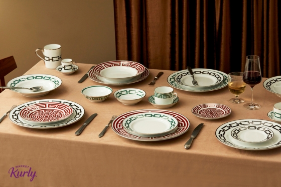 마켓컬리에서 선보이는 '지노리1735'는 300년의 역사를 간직한 이탈리아 명품 테이블웨어 브랜드다. 체인을 연결한 듯한 기하학적 패턴이 인상적인 '카테네' 라인과 미로 패턴의 '라비린토' 라인의 컵과 접시 세트를 마련했다. 해당 브랜드는 2013년 구찌가 인수하면서 더욱 유명해졌다.